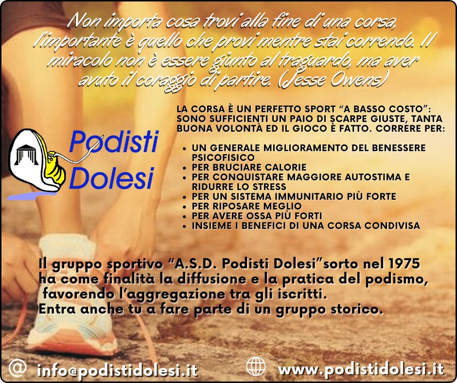 Il gruppo ha come finalità la diffusione e la pratica del podismo, favorendo l’aggregazione tra gli iscritti.